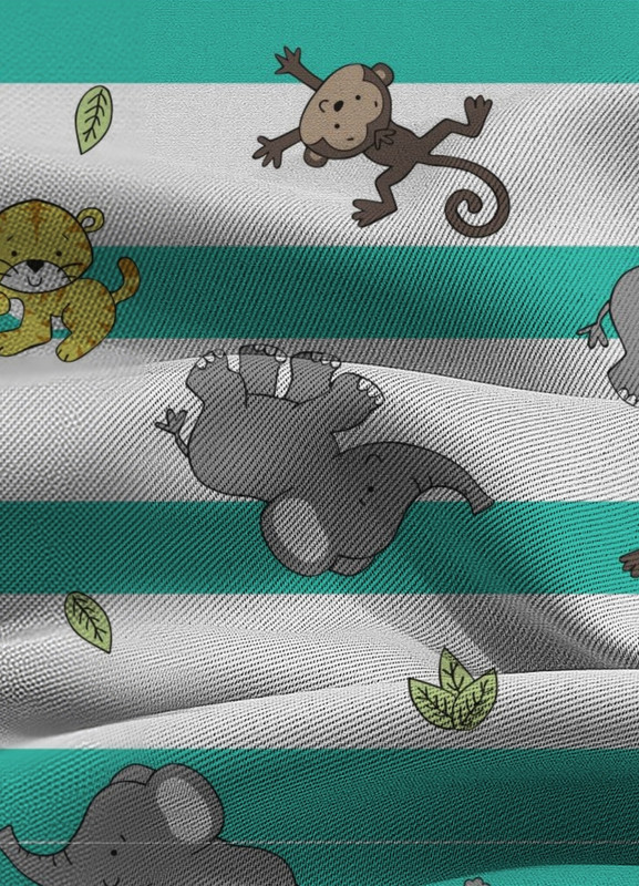 Tecido Blackout Estampa Digital Animais e Listras Verdes 1,35m de Largura