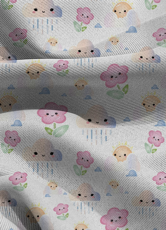 Para preservar as estampas, lave o tecido com temperatura máxima de 40ºC e evite exposição direta ao sol durante a secagem.