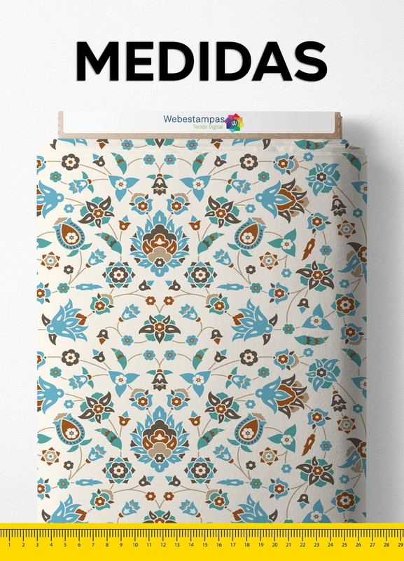 Para preservar as estampas, lave o tecido com temperatura máxima de 40ºC e evite exposição direta ao sol durante a secagem.