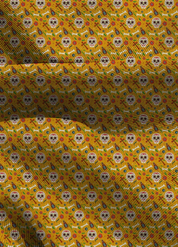 Tecido Blackout Estampa Digital Caveira Mexicana Fundo Amarelo 1,35m de Largura