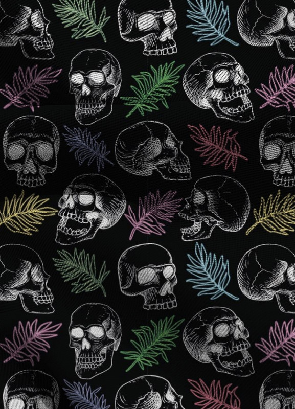 Tecido Blackout Estampa Digital Caveiras e Ramos Coloridos 1,35m de Largura