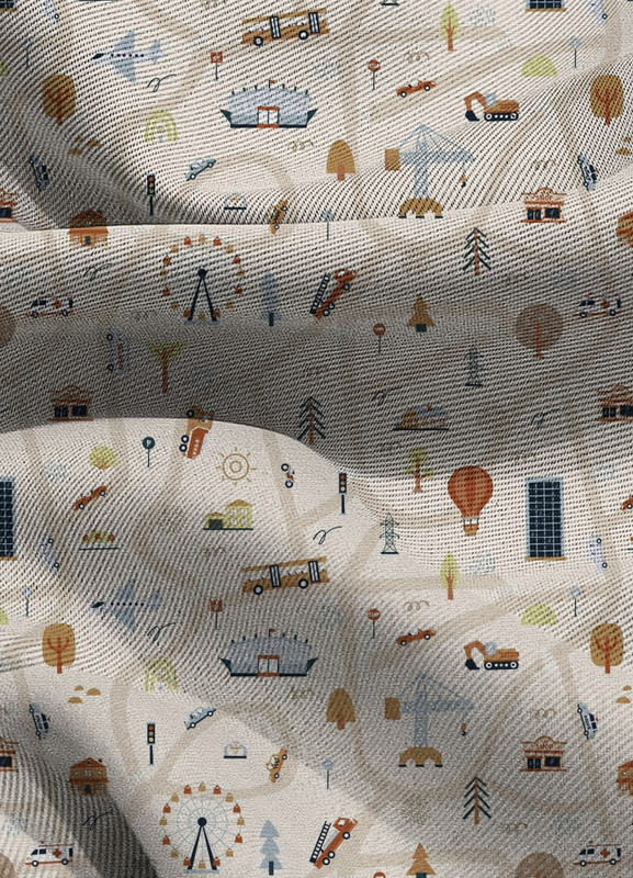 Tecido Blackout Estampa Digital Cidade Fundo Bege 1,35m de Largura