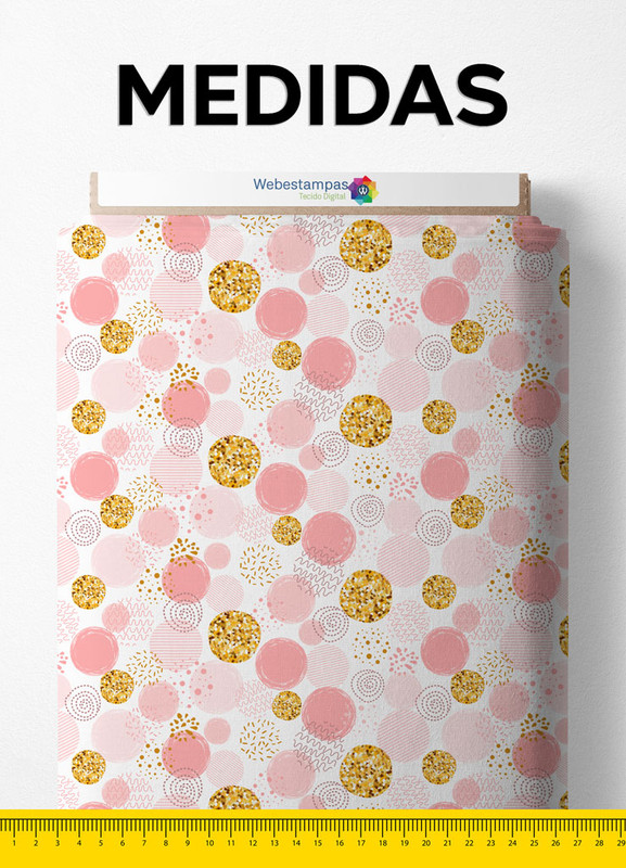 Tecido Blackout Estampa Digital Círculos Rosa e Amarelos 1,35m de Largura