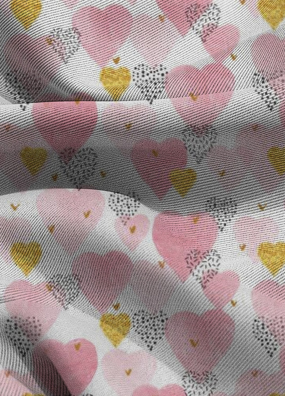 Tecido Blackout Estampa Digital Coração Dourado e Rosa 1,35m de Largura