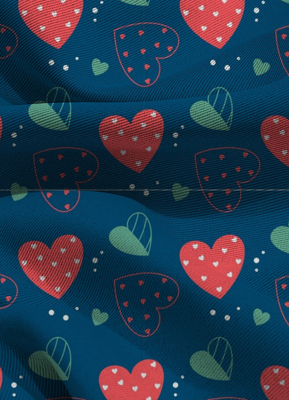 Tecido Blackout Estampa Digital Corações Fundo Marinho 1,35m de Largura
