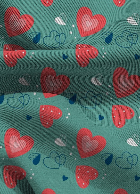 Tecido Blackout Estampa Digital Corações Fundo Verde 1,35m de Largura