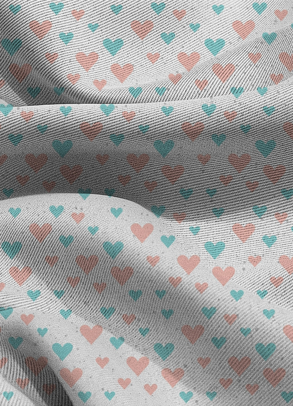 Tecido Blackout Estampa Digital Corações Laranja e Verde 1,35m de Largura