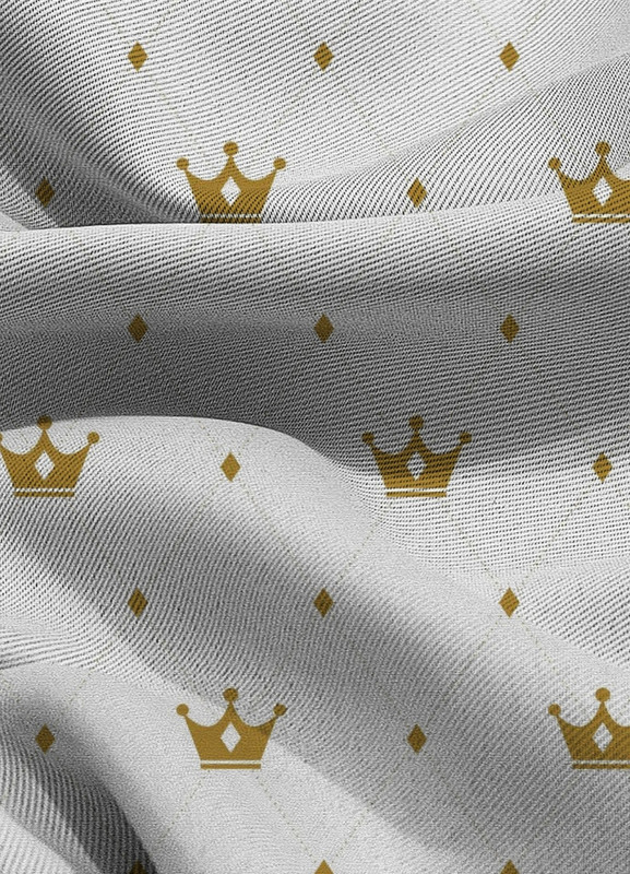 Tecido Blackout Estampa Digital Coroa Dourada Fundo Branco 1,35m de Largura