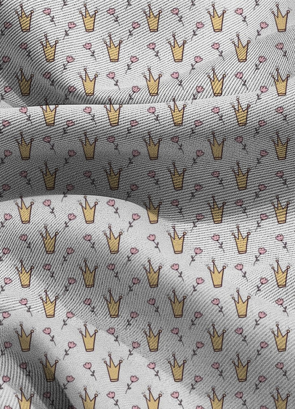 Tecido Blackout Estampa Digital Coroa e Rosas Fundo Branco 1,35m de Largura