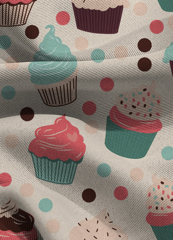 Tecido Blackout Estampa Digital Cupcakes Lindos 1,35m de Largura