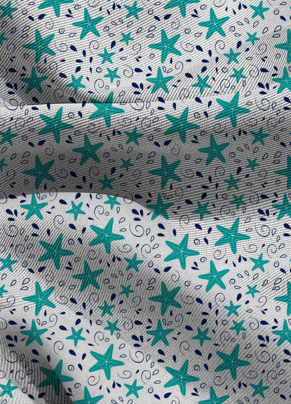 Tecido Blackout Estampa Digital Estrela Do Mar Azul 1,35m de Largura