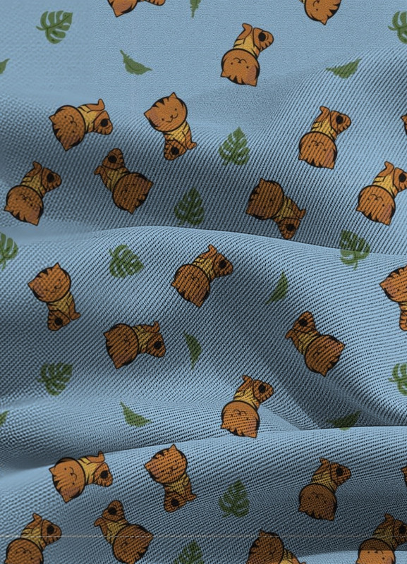 Tecido Blackout Estampa Digital Gatinho Fundo Azul 1,35m de Largura
