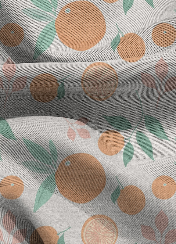 Tecido Blackout Estampa Digital Laranja Fundo Branco 1,35m de Largura