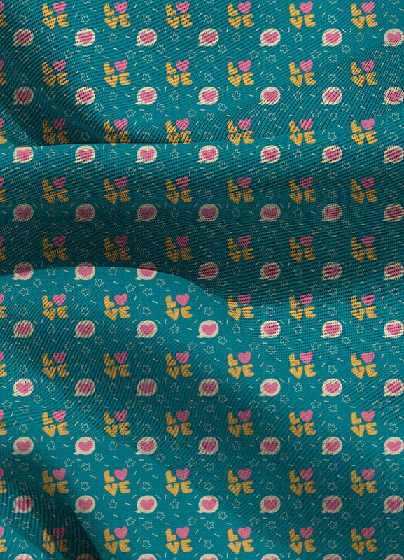 Tecido Blackout Estampa Digital Love Fundo Azul 1,35m de Largura