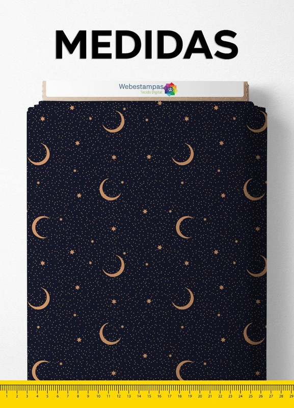 Tecido Blackout Estampa Digital Lua e Estrelas Minimalista Marinho 1,35m de Largura