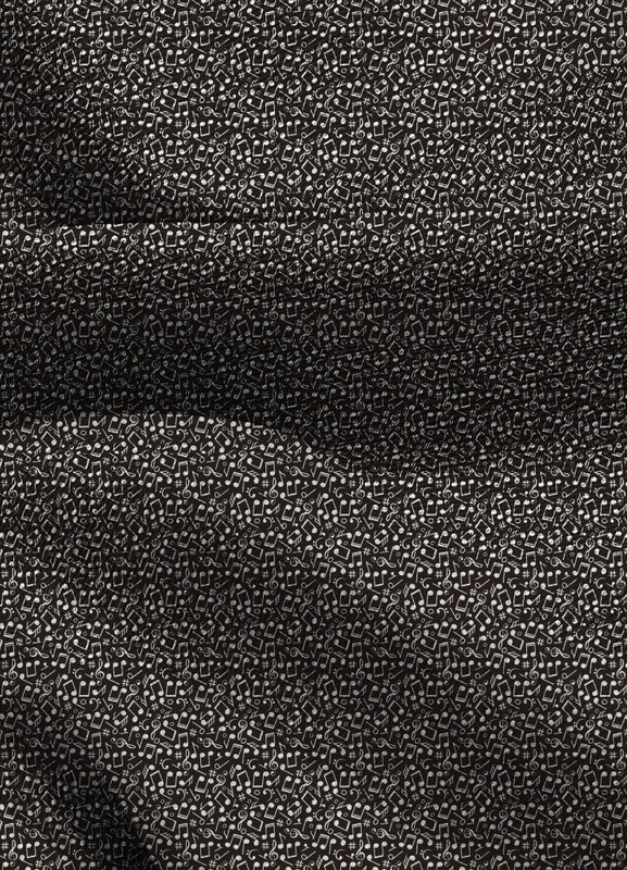 Tecido Blackout Estampa Digital Notas Musicais Branco Fundo Preto 1,35m de Largura