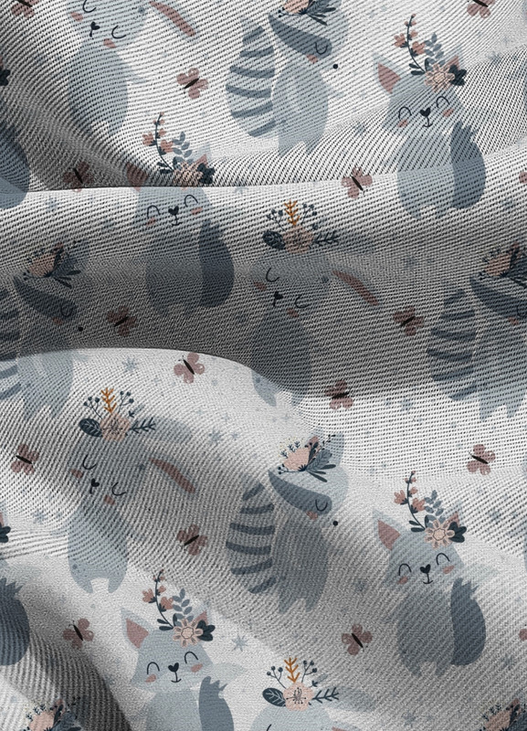 Tecido Blackout Estampa Digital Raposa Cinza 1,35m de Largura