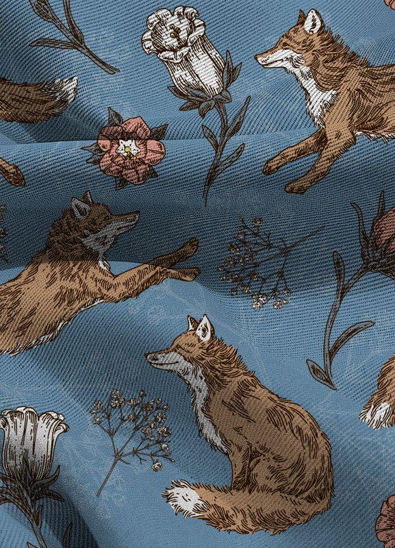 Tecido Blackout Estampa Digital Raposa Fundo Azul 1,35m de Largura