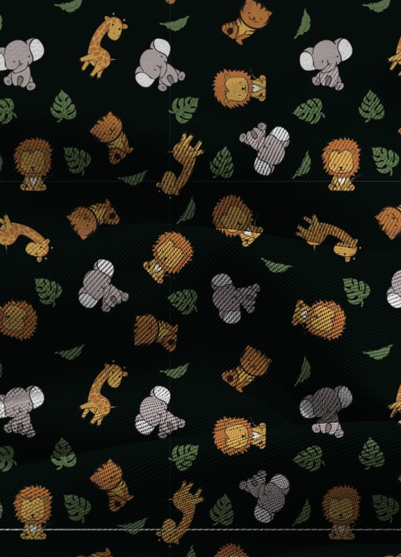 Tecido Blackout Estampa Digital Savana Fundo Preto 1,35m de Largura