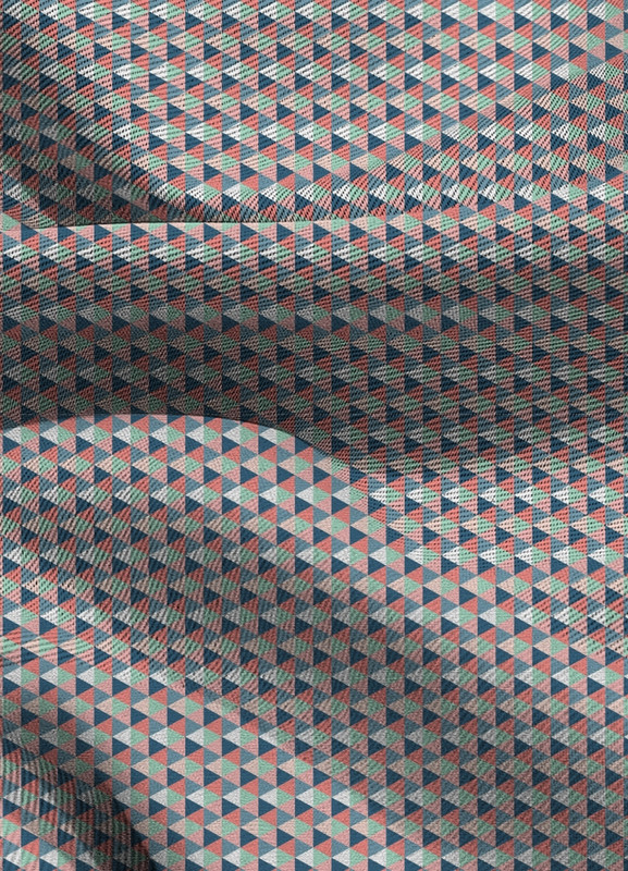 Tecido Blackout Estampa Digital Triângulos Azul Verde e Rose 1,35m de Largura