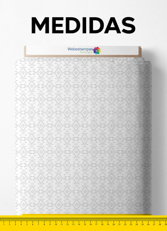 Tecido Cetim Estampa Digital Arabesco com Ramos Cinza e Branco 1,40m de Largura
