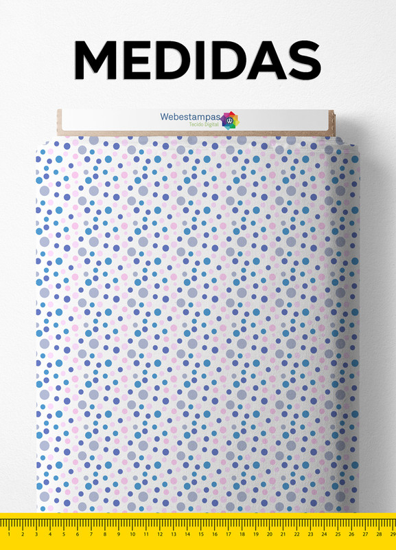 Tecido Cetim Estampa Digital Bolinhas Azul, Rosa e Roxo 1,40m de Largura