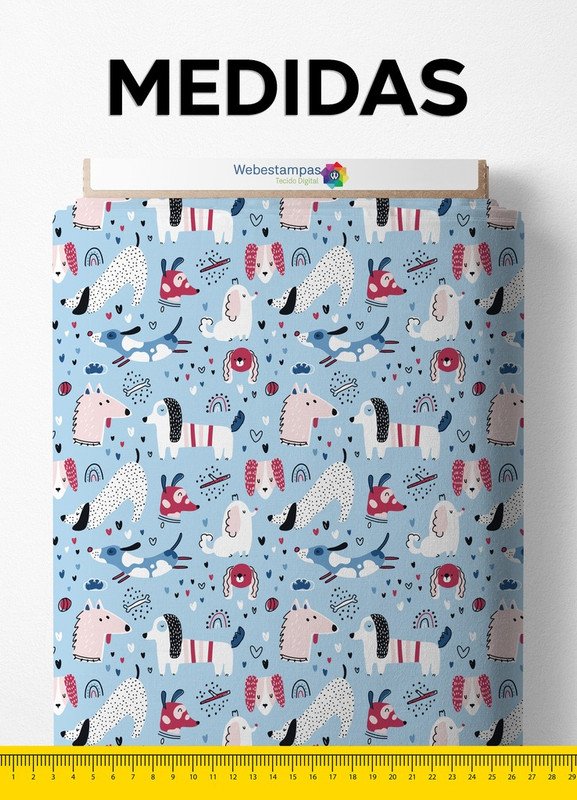 Tecido Cetim Estampa Digital Cachorrinhos Fundo Azul 1,40m de Largura
