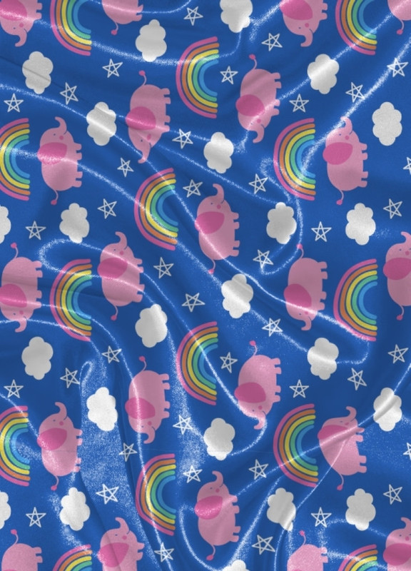 Tecido Cetim Estampa Digital Elefante Arco-Íris Fundo Azul 1,40m de Largura