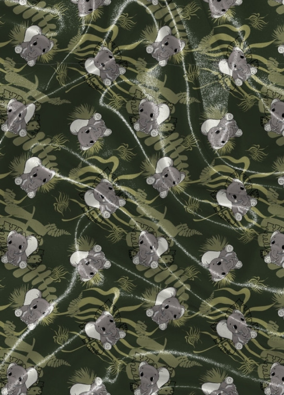 Tecido Cetim Estampa Digital Elefantinho Fundo Verde 1,40m de Largura