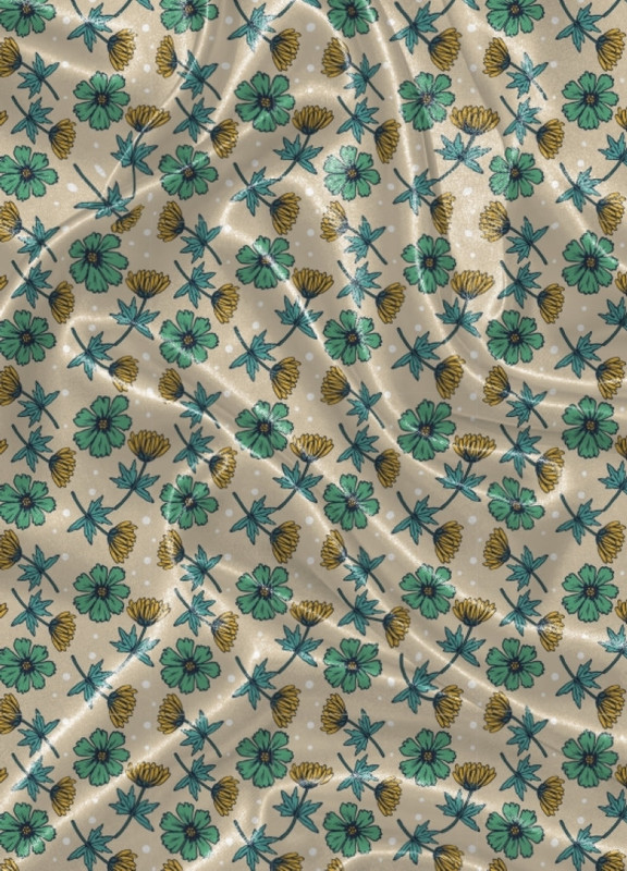 Tecido Cetim Estampa Digital Flores Amarelas e Verdes 1,40m de Largura