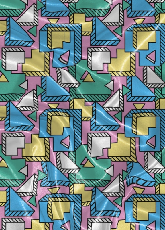 Tecido Cetim Estampa Digital Formas Multicores Fundo Rosa 1,40m de Largura