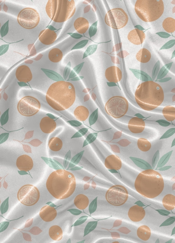 Tecido Cetim Estampa Digital Laranja Fundo Branco 1,40m de Largura