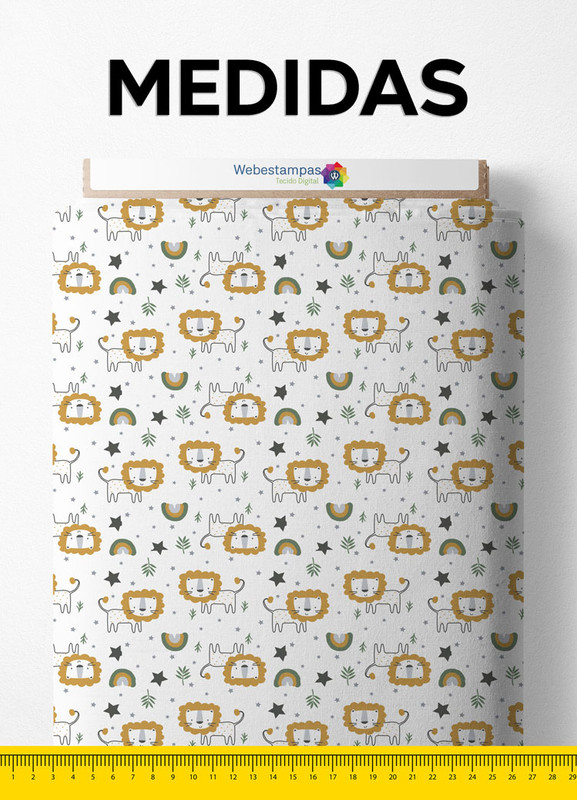 Tecido Cetim Estampa Digital Leãozinho 1,40m de Largura