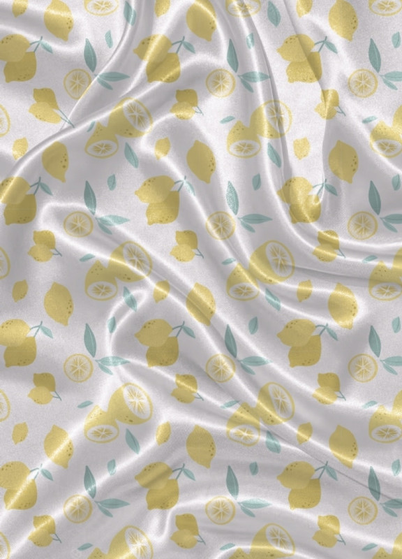Tecido Cetim Estampa Digital Limão Amarelo Claro 1,40m de Largura