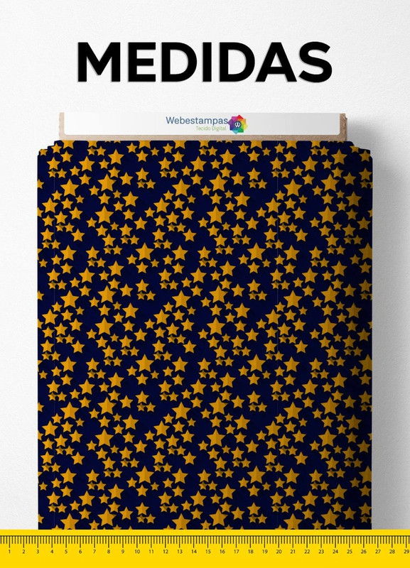 Tecido Cetim Estampa Digital Mini Estrelas Douradas Fundo Marinho 1,40m de Largura