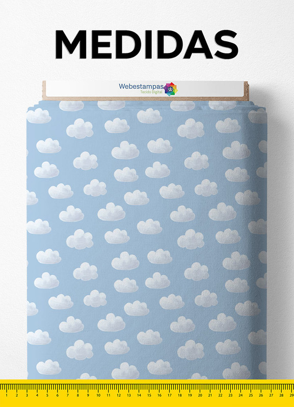 Tecido Cetim Estampa Digital Nuvens 1,40m de Largura