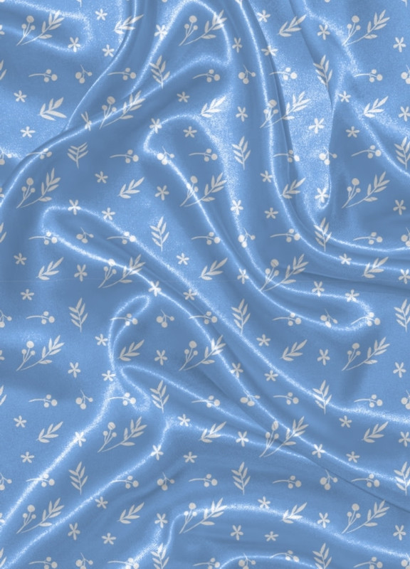 Tecido Cetim Estampa Digital Raminhos Branco Fundo Azul 1,40m de Largura