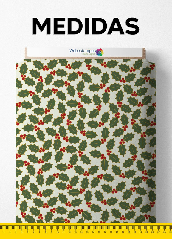 Tecido Cetim Estampa Digital Ramos de Natal 1,40 de Largura