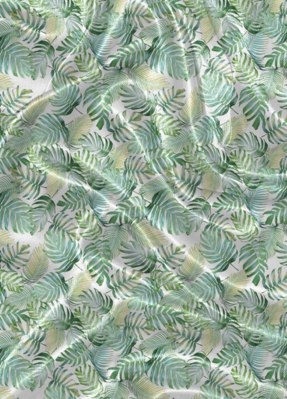 Tecido Cetim Estampa Digital Ramos Verdes Claros 1,40m de Largura