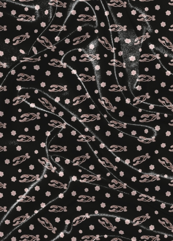 Tecido Cetim Estampa Digital Sapatilha de Balé Fundo Preto 1,40m de Largura