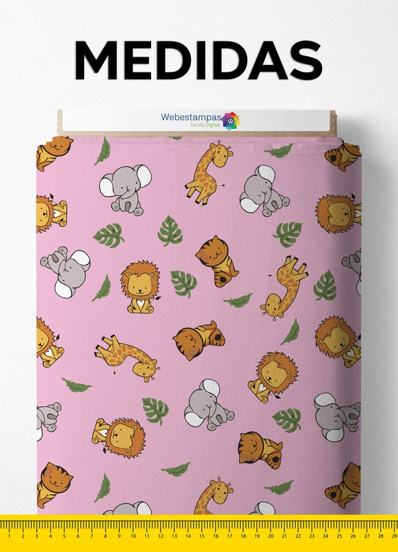 Tecido Cetim Estampa Digital Savana Fundo Rosa 1,40m de Largura