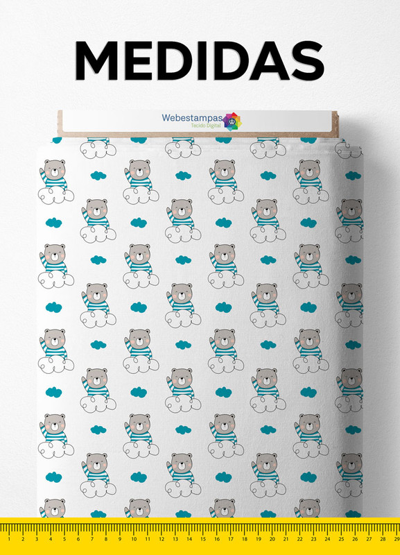 Tecido Cetim Estampa Digital Urso Céu 1,40m de Largura