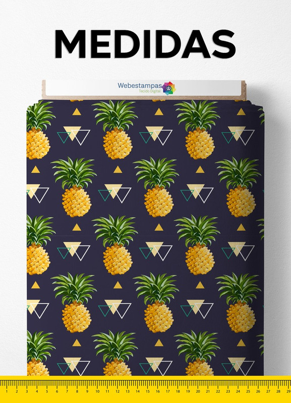 Tecido Helanca Estampa Digital Abacaxi Fundo Marinho 1,55 de Largura