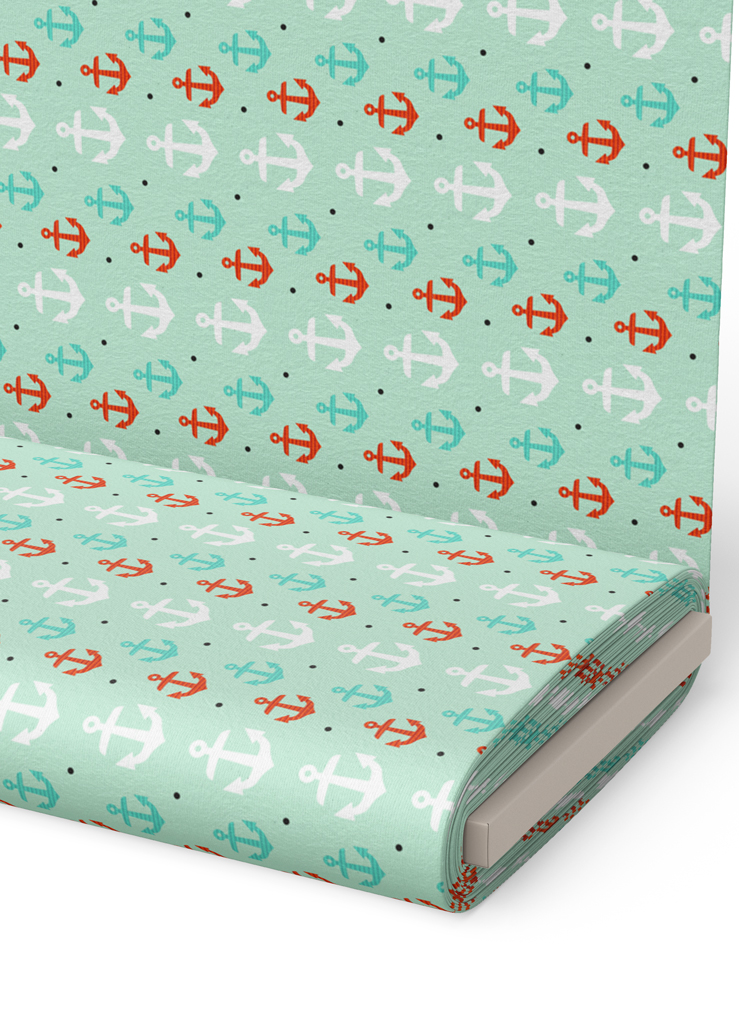 Tecido Helanca Estampa Digital Ancoras Fundo Verde 1,55m de Largura