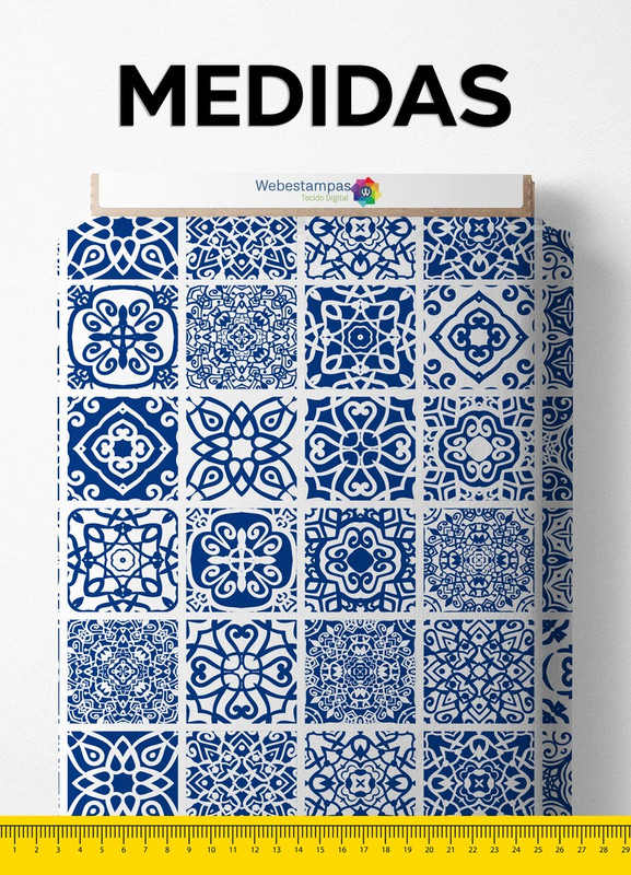 Tecido Helanca Estampa Digital Arabesco Azulejo Marinho 1,55m de Largura