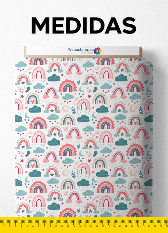 Tecido Helanca Estampa Digital Arco-Íris e Nuvens 1,55m de Largura