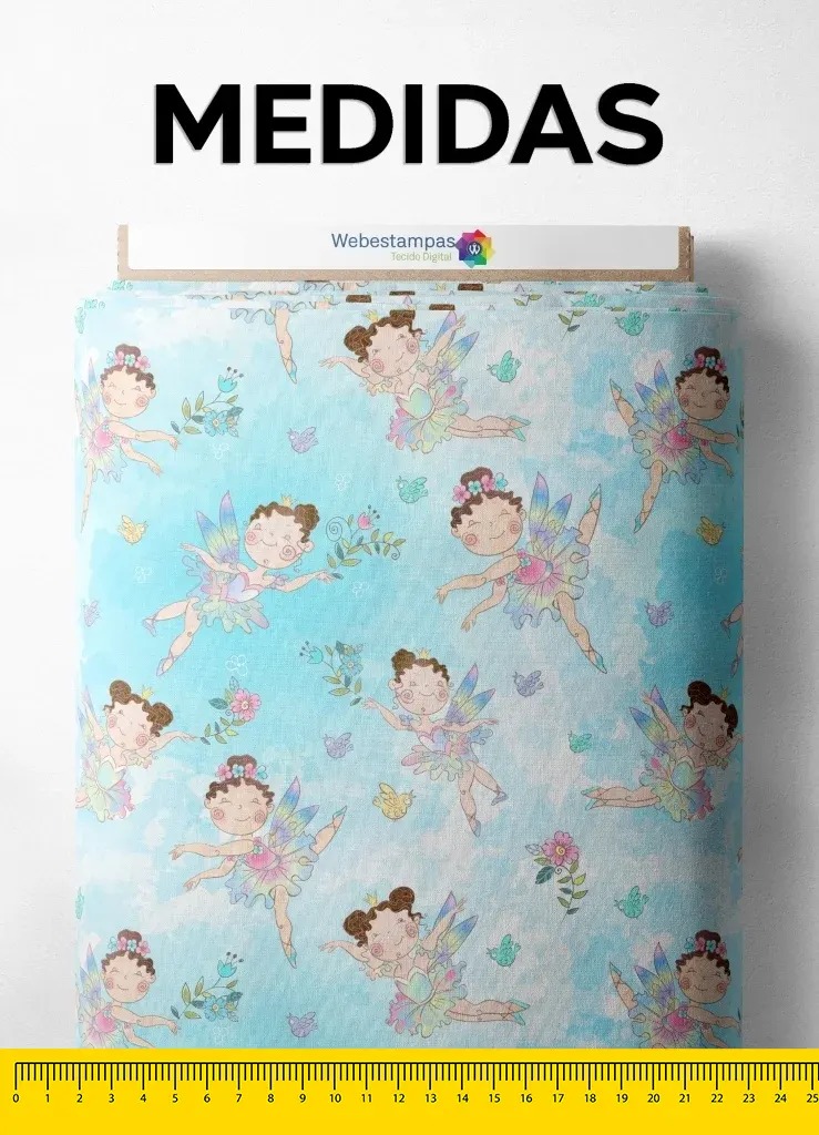 Tecido Helanca Estampa Digital Bailarina Linda Fundo Azul 1,55m de Largura