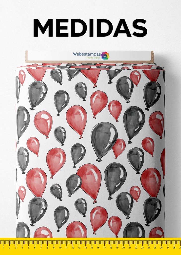 Tecido Helanca Estampa Digital Balões Vermelhos e Pretos 1,55m de Largura