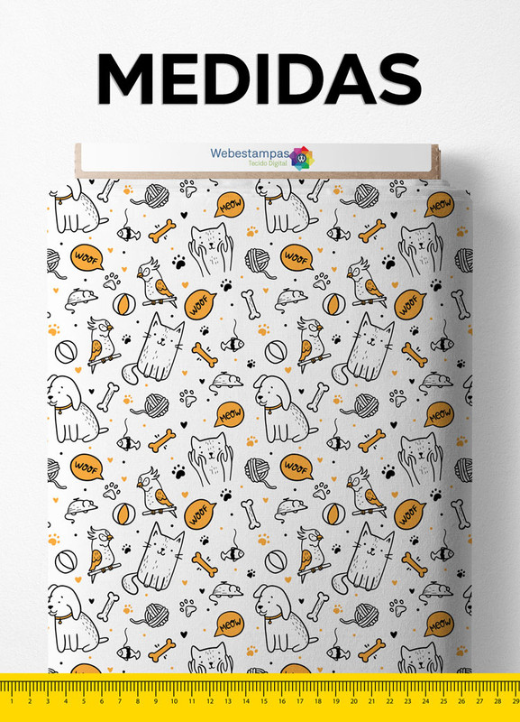 Tecido Helanca Estampa Digital Cães E Gatos 1,55m de Largura