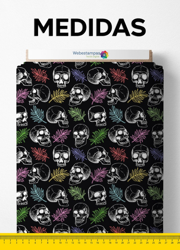 Tecido Helanca Estampa Digital Caveiras e Ramos Coloridos 1,55m de Largura